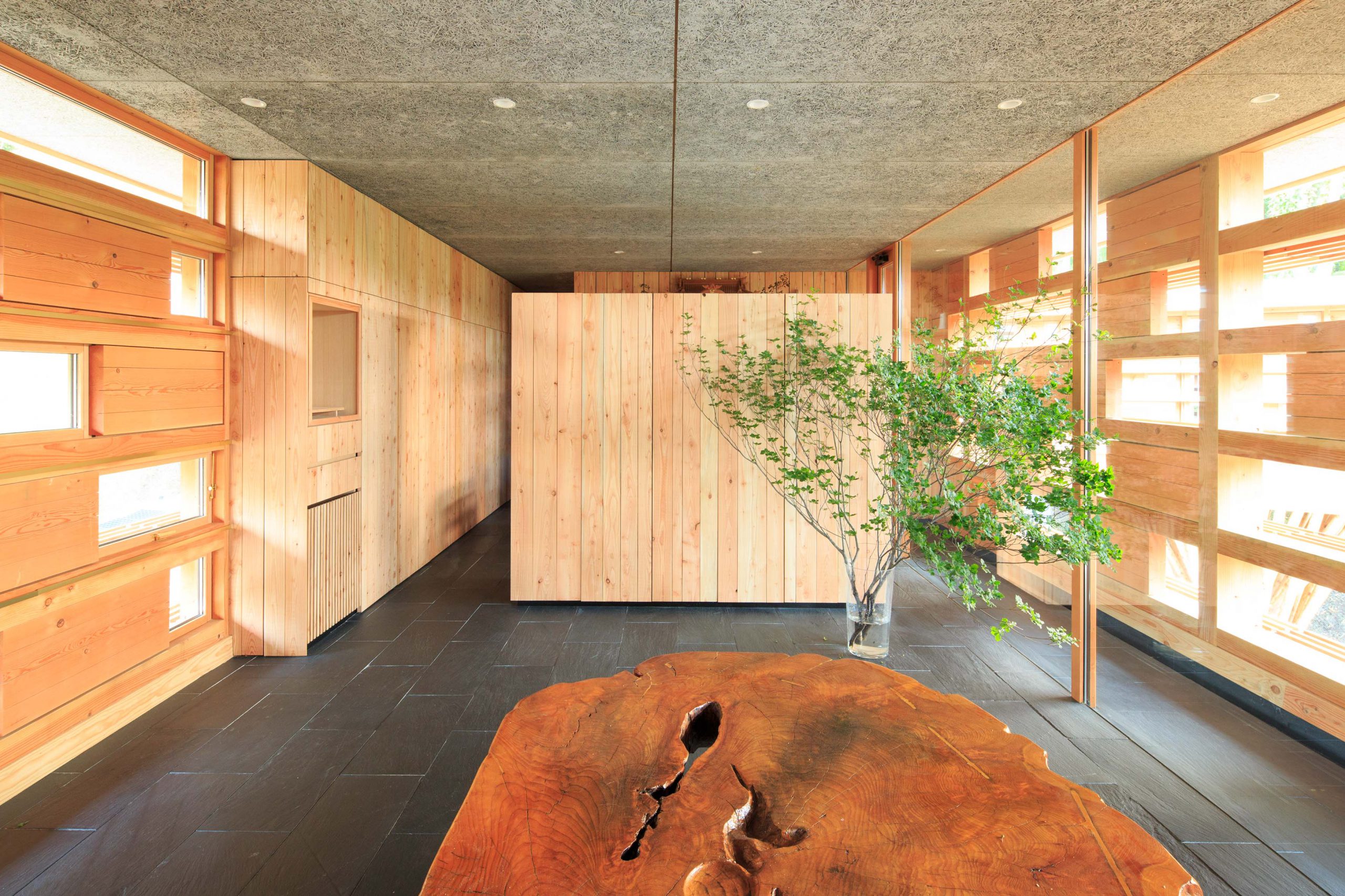 茨城県の北に位置する五浦。この町は昔から漁業が盛んである。景色に惚れた岡倉天心が終の住処として愛した場所で、近くには、天心が設計した六角堂や、天心記念五浦美術館がある。建主は漁師で、先祖は天心のそばで舟の付き人をしていたという。当時、天心が教えとして「漁師は山に木を植えろ」という言葉を残したと聞いた。川の上流にある山の豊かな森林が多くの栄養分をつくる。栄養分のある水が、雨水から川に流れ、海に流れ着いて広がることで魚の生体関係がよくなる。漁場の仕事を豊かにする原点は山であり、豊かな森林だということを代々受け継ぎ伝え続けている。「五浦の家」は、その先祖から受け継いだ山の土地を利用して住宅を計画した。
