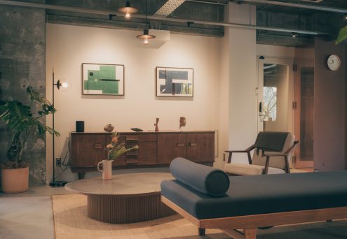 東京・日本橋兜町。明治期に株式会社が生まれていった際の中心地で、日本の近代化を象徴する場所として長い歴史を刻んできたこの街。東京に点在する自然そのものからインスパイアされたタイムレスなデザインをコンセプトとし、築97年の歴史的建造物が醸し出す重厚感ある建造物を生かしたリノベーション。